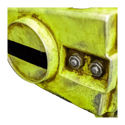A toggle switch activates the prop which has a constant motor idling sound effect when turned on. Pull the trigger to spin the chain and unleash chainsaw sound effects directly from the film!