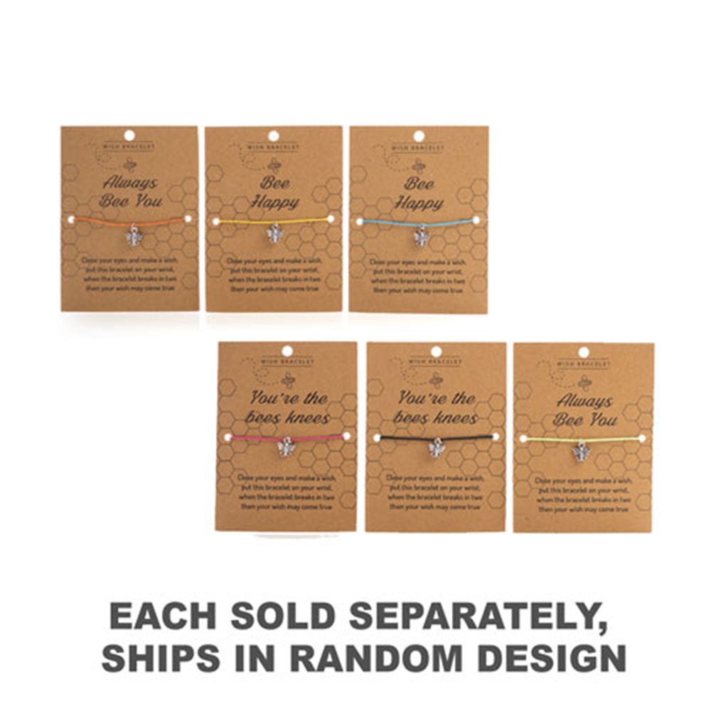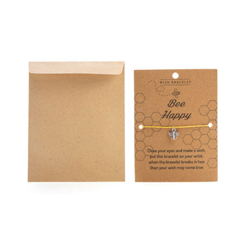 Feche os olhos e faça um desejo com esta pulseira de desejo feita à mão. Apresenta um charme de abelha prateada em um cabo ajustável. Vem com um cartão -presente e envelope