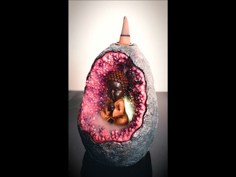 - Baby Buda Geode liderou o queimador de incenso de refluxo.