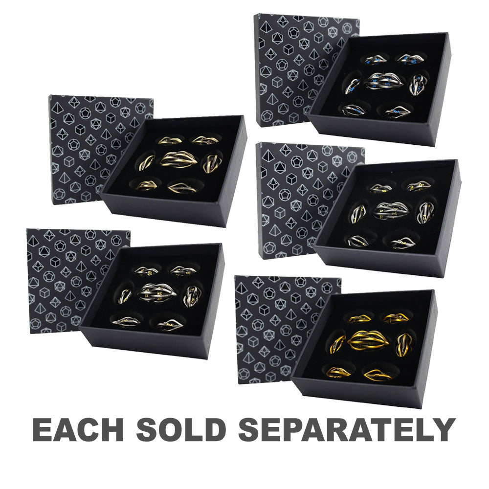 Tärningarna kommer i en presentbox med en unik design med skumdivots för att hålla tärningarna säkra och säkra.